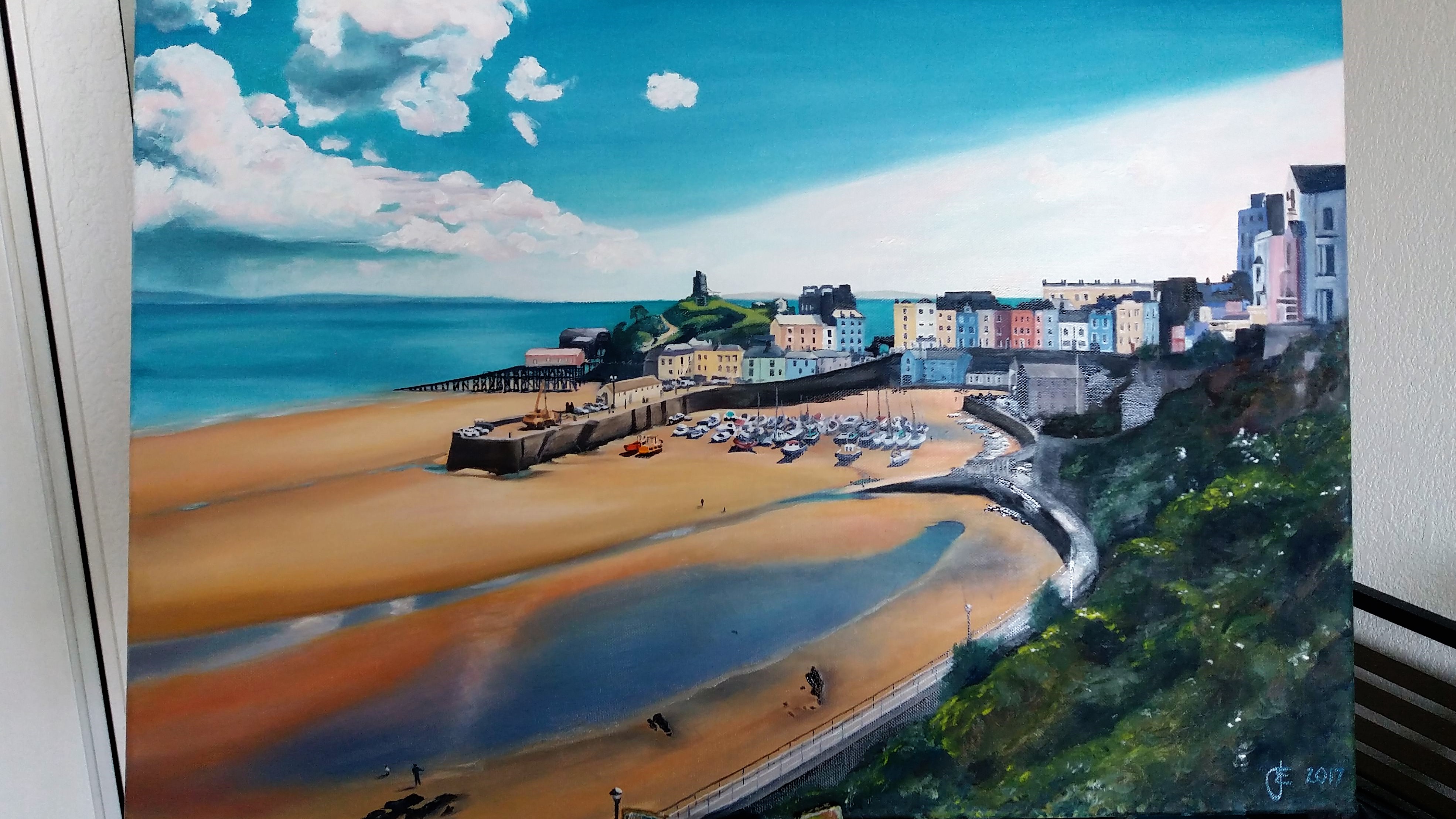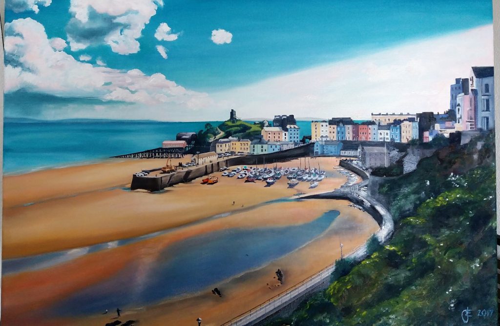 Low tide in Tenby: Oil on canvas 50×70